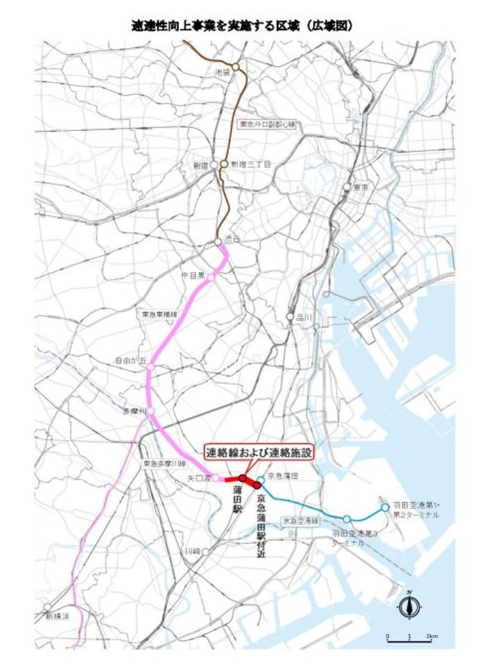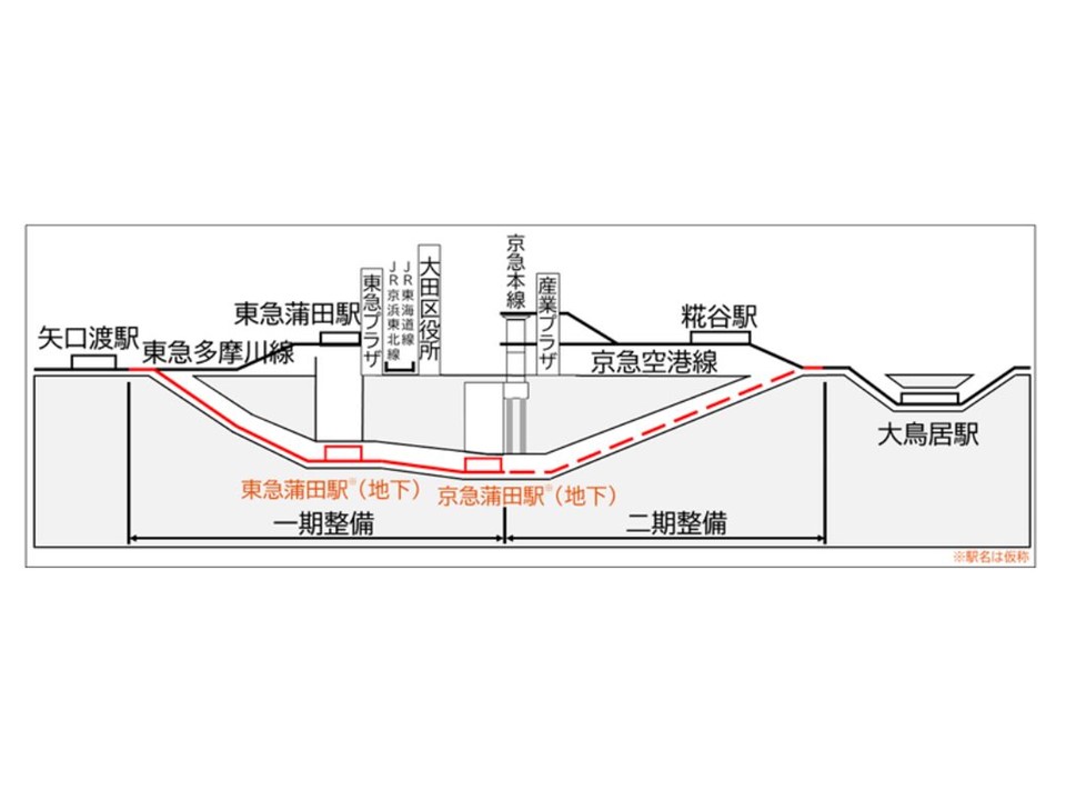 「矢口渡駅」と「京急蒲田駅」の地下駅を建設する。羽田空港方面へ向かうには、新設する地下駅から「京急蒲田駅」へ乗り換えが必要になる。