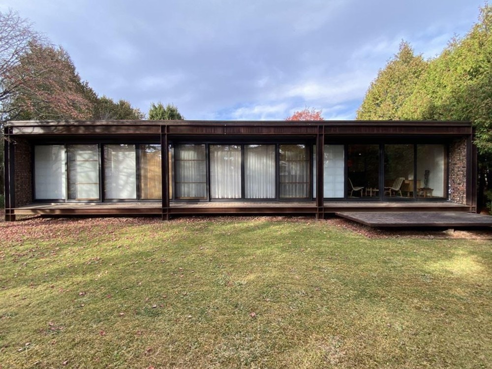 本人が認めているのにどうかとは思うが、マインドはだいぶ違うと思う。ファンズワース邸といえば、ミースが建設費超過などで施主と大揉めし、訴訟の末に売り払われたいわくつきの住宅。緑に囲まれているのに窓はごく一部しか開かず、暑さ・寒さの調節も大変そうだ。