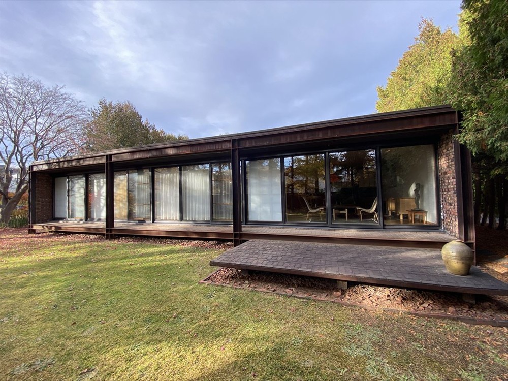 この住宅はしばしば、モダニズム建築の巨匠、ミース・ファン・デル・ローエ(1886~1969年)が設計した「ファンズワース邸」(1951年)に例えられる。上遠野は“北海道のミース”と呼ばれることもあった。