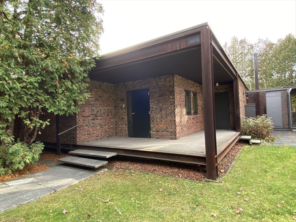 鉄骨造なので壁は構造材ではないが、壁厚は約30cmもある。外部に積んだレンガは、上遠野が好んだ素材。このときは予算が限られていたため、野幌(北海道江別市)の工場から色ムラのある不良品を安く買って使った。その色ムラが柱梁のコールテン鋼のさび色と相まって、本家のファンズワース邸にはない優しさを醸し出している。