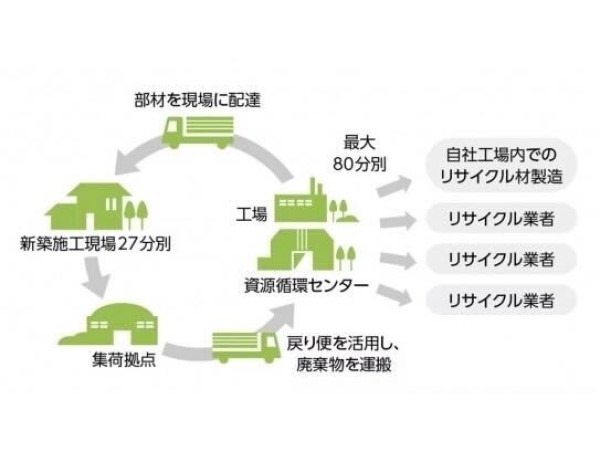 2005年には、積水ハウスの施工現場で発生する廃棄物を広域認定制度に基づき、自社施設「資源循環センター」に回収して分別したのち、100%リサイクルする独自の資源循環システム「積水ハウスゼロエミッションシステム」を実現化。新築施工現場のゼロエミッション(産業廃棄物の単純焼却と埋め立て処分ゼロ)を達成した。