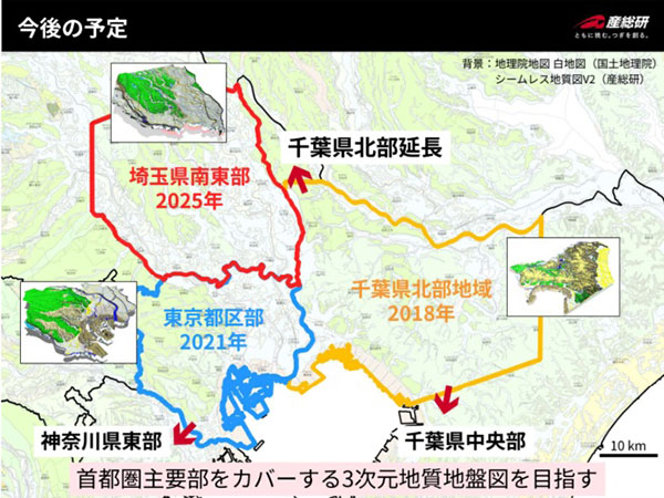 今後も千葉県北部地域や神奈川県東部など首都圏の主要部での地質地盤図、それ以降には名古屋など他の都市圏の3次元地質地盤図が作成される予定とのこと。知るのは怖くもあるが、今後の進展に注目したい。