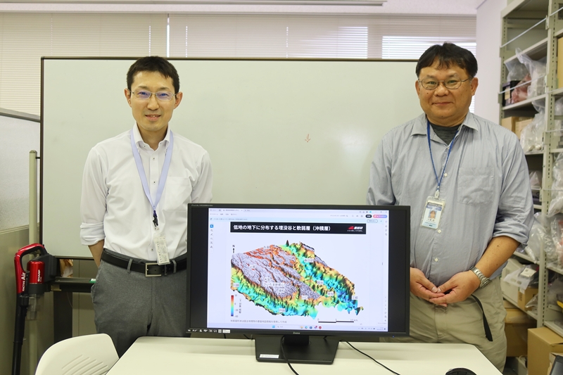 「大宮台地のボーリング調査データを見ていくと同じ標高でも側方に違う地層があったり、また硬い地層の下に軟らかい層があったりする。なぜだろうと興味を持ち、2002年以降に大宮地域の地質について論文をまとめるなどしていたのです。3次元地質地盤図としては千葉、東京都心部に続く3番目の公開となりましたが、台地の地下に何かあると思うに至った発端は埼玉でした」