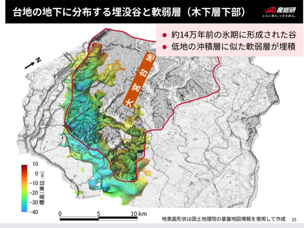 「実際にはもっと樹枝状に谷があるはずですが、ボーリングデータでは把握できていません。現在3次元地質地盤図上に表されている谷の姿が実際の谷のすべてではないので、その点は注意が必要です」