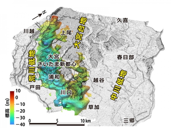 大宮台地の地下、大宮、浦和のあたりに深い埋没谷が