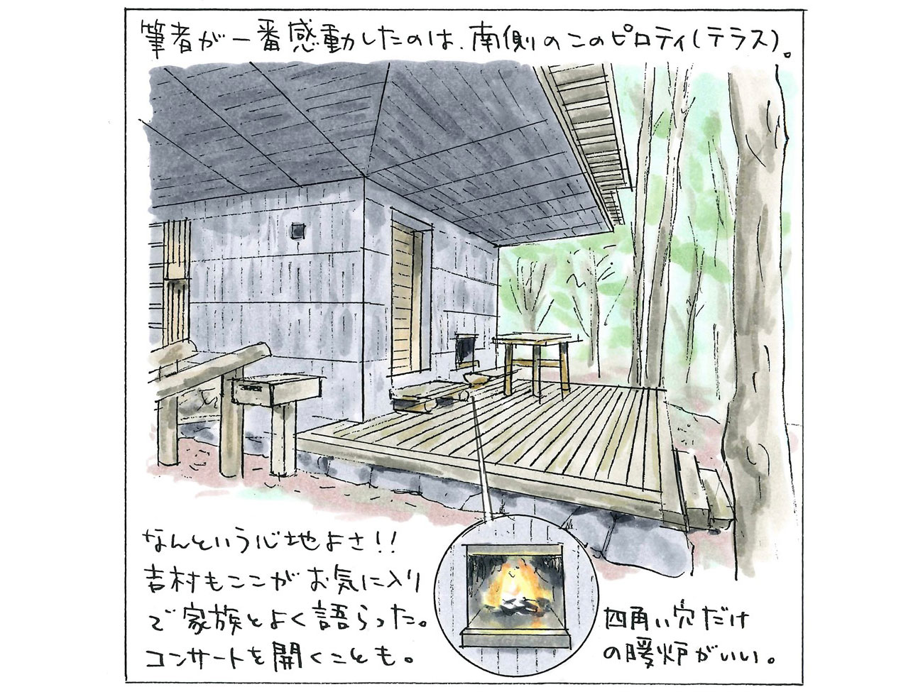 実際、吉村の家族はここで多くの時間を過ごしたという。ときにはプロの音楽家である妻や娘がコンサートを行うこともあった。
