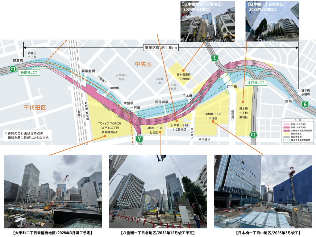 工事スケジュールとしては、地下化工事が2035年ごろに完了し、その後、既存高架施設の撤去が2040年ごろまでに行われる予定となっている。なお、2025年4月には、八重洲線の長期通行止めが実施されており、すでに呉服橋・江戸橋両出入口の撤去は完了している。今後は、本格的な地下化工事に移行する段階に入る。