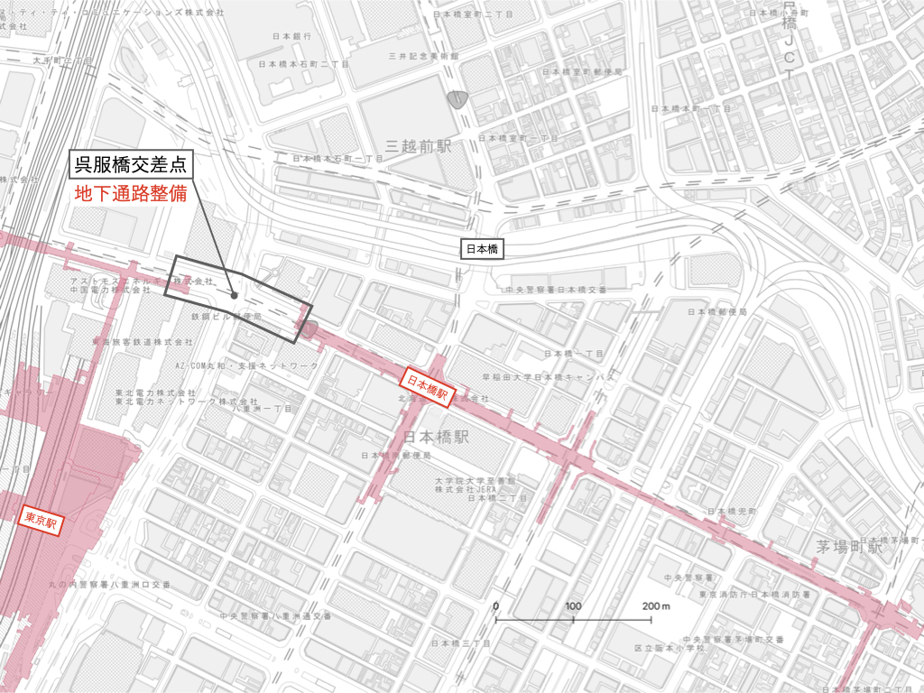 さらに、呉服橋交差点の地下歩道整備により、東京駅から日本橋駅への徒歩アクセスが改善され、周辺の大手町・日比谷・有楽町・銀座方面へとつながる巨大な地下ネットワークの構築も進む。これにより東京駅から日本橋駅までの徒歩アクセスがしやすくなり、日本橋周辺の商業施設にとっては大きなメリットになる。