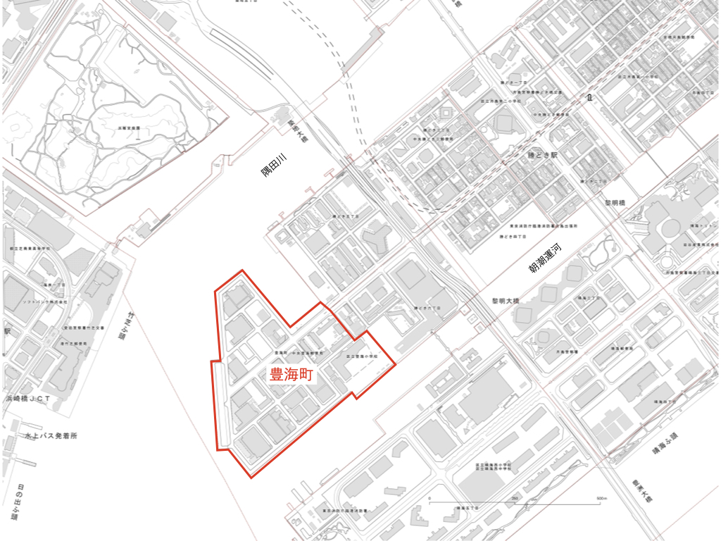 勝どきや月島は知っていても、豊海(とよみ)は知らないという人も多いのではないだろうか。豊海地区とは、中央区の勝どき駅があるエリアの南西部に位置するエリアで、このエリアの多くは港湾法上の臨港地区に指定されており、その役割として、冷凍・冷蔵倉庫が多く立地している。このこともあり、一見すると住宅地はないように思えるが、実はそうでもない。
