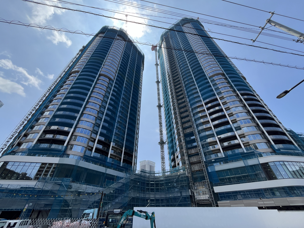 市街地再開発事業が行われているエリアは、豊海町内の一部と勝どき6丁目で、施行面積は約2.0ヘクタールとなっている。事業の正式名称は「豊海地区第一種市街地再開発事業」であり、すでにマンション名についても「THE TOYOMI TOWER MARINE & SKY」に決まっている。このエリアに地上54階、地下1階、高さ189mに及ぶ住宅・店舗・公共施設が入る複合用途の建物の建築工事が進められている。