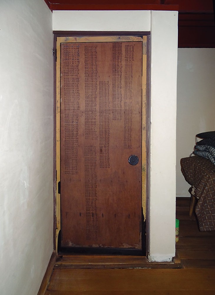 寝室の扉の裏面だ。そこには榎本氏が幻庵を訪れた日の日付がびっしりと書き込まれていた。石山氏の言っていたことは決して大げさではなかったようだ。