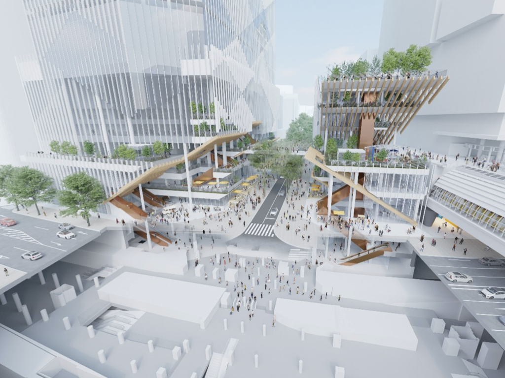 改めて、まず注目されるのは歩行者ネットワークの強化である。上空通路や地下広場が整備され、駅と青山方面をシームレスにつなぐ動線が確保される。雨の日でも快適に移動できる環境が整い、これまで課題とされてきた高低差や道路による分断は大きく解消される見通しだ。こうした改善は、通勤や日常の移動がスムーズになるだけでなく、住まい選びにおける「暮らしやすさ」の評価にも直結する。
