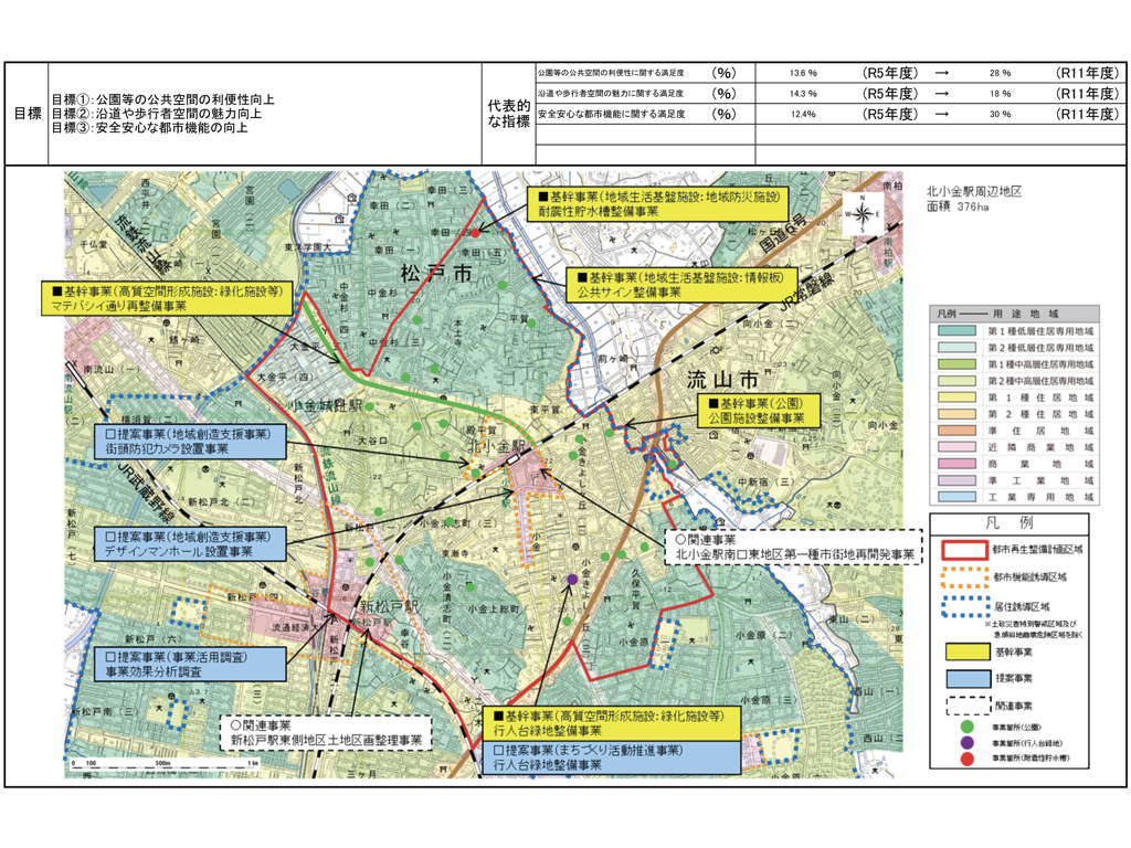 同市はこれらの社会基盤整備と民間による再開発事業との相乗効果によって、北小金駅周辺地区全体の魅力向上を図ることとしている。