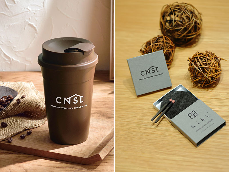 来場者には、WORK&RESTのコンセプトノベルティとして、コーヒーの豆かすを再利用したアップサイクルのタンブラーと、アロマの香りがするマッチ型のお香スティックのいずれかを提供する。これにより、五感に訴えかける体験を提供し、プロダクトやコンセプトへの理解を深めてもらうことを狙う。