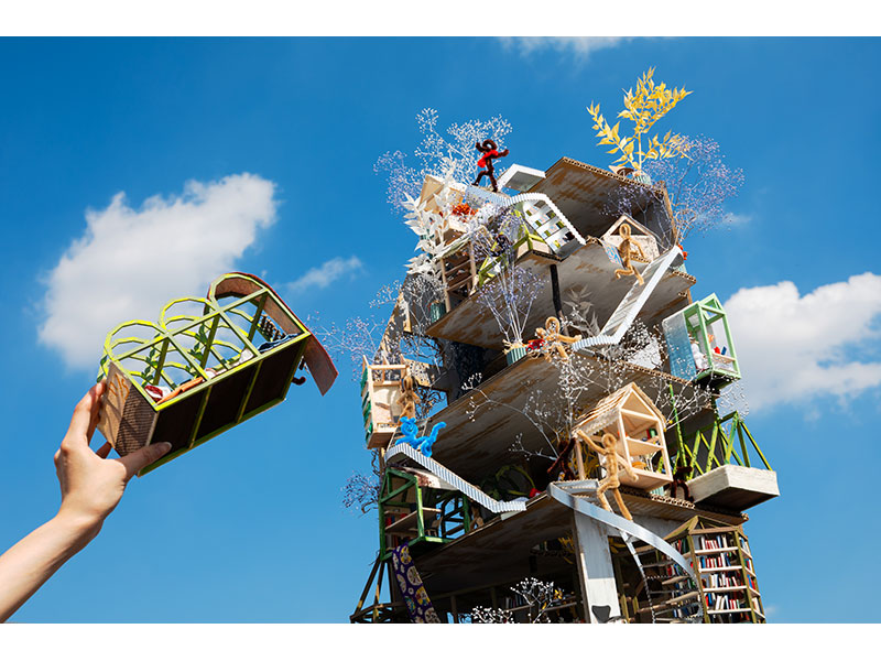 「現代を大きな変化の時代と捉え、近代の価値観が変わりつつある状況の中で、本人が抱える問題意識と創作のエネルギーを評価した。当初の書類審査では建物のバーの青い扉しかなく、宣言はしているが物の表現が全くない状態だった。しかし、その後の数ヶ月で“謎の天国のような塔”をつくりあげた。最後にものをいうのは、このような意味不明な創作のエネルギーであり、一見感覚的につくられているように見えながらも、大変理知的に考えられている。”自分が90歳になった時にこれが出来上がるかもしれない。“と発言したことを聞き、この人物は本気でクレイジーな、でも信念を持ってやり続ける人だと感じられた」と、評価した。