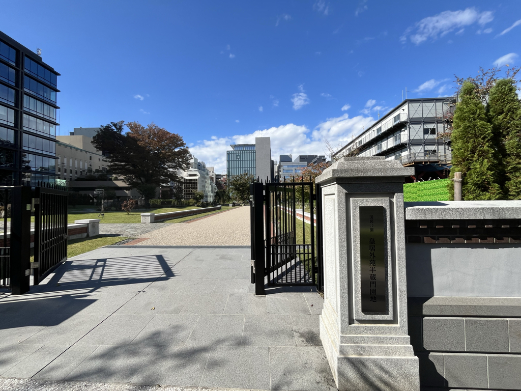 今回の計画に注目できる最大の理由は、その立地にある。敷地は東側で皇居の半蔵濠に面し、北側は現在も外交活動の拠点である英国大使館に、南側は2015年に返還された大使館跡地を整備して開園した「皇居外苑半蔵門園地」に隣接している。