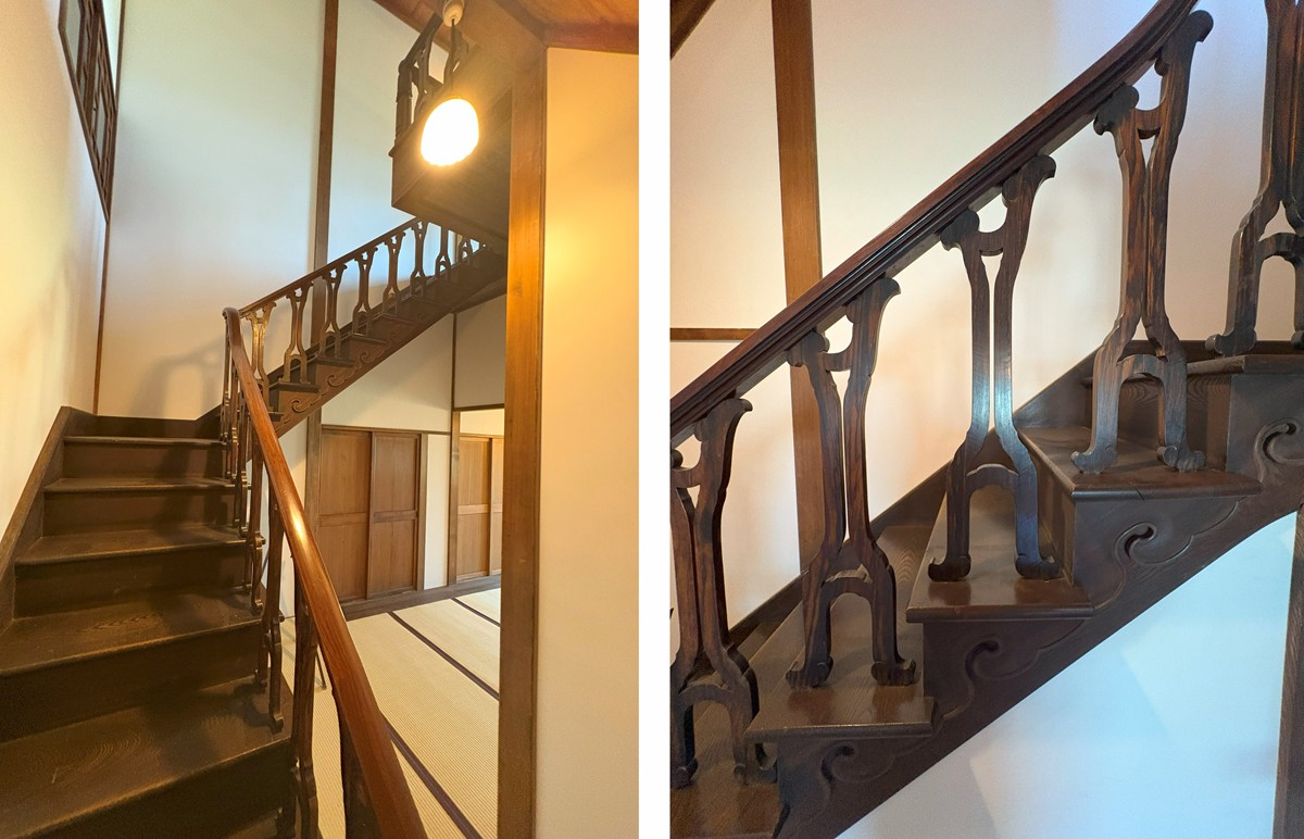 NOVAREに移築された表座敷を見ると、これみよがしなところが全くないことに驚く。西洋風が得意だったはずの二代喜助だが、檜(ひのき)造りの日本家屋。西洋っぽいのは、2階に上る階段の1つが四角いらせん状であることくらい。かといって、数寄屋的な凝った和のディテールにあふれているかというとそうでもない。いい材料を使って丁寧な仕事を重ねた印象だ。おそらく、それが渋沢の要望だったのだろう。