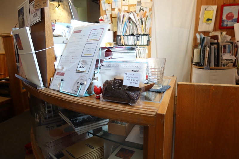 入ったところにはカフェがあり、陶器やカード、食品、ぬいぐるみや風呂の蓋(!)が売られており、壁には絵やTシャツが飾られ、珈琲も飲める。しかも、置かれているものはひとつずつ原さんが知っている人達が作ったもの。創作の背景も、その人の思いも知った上で置かれている。時には作者が居合わせることもある。