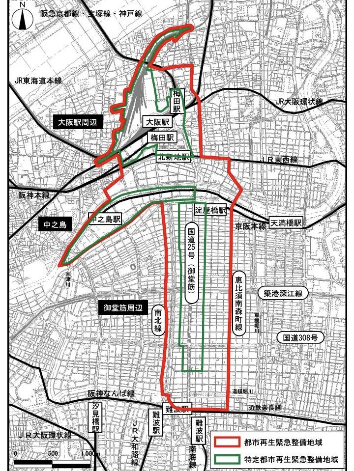 大阪駅周辺(梅田エリア)から中之島、御堂筋にかけての一帯は、国の「特定都市再生緊急整備地域」に指定されており、うめきた2期などのプロジェクトと連動して、街全体を大きく作り変える動きが進んでいる。その中で中之島は、エリアごとに役割を分担しながら、新しい街へと生まれ変わりつつある。