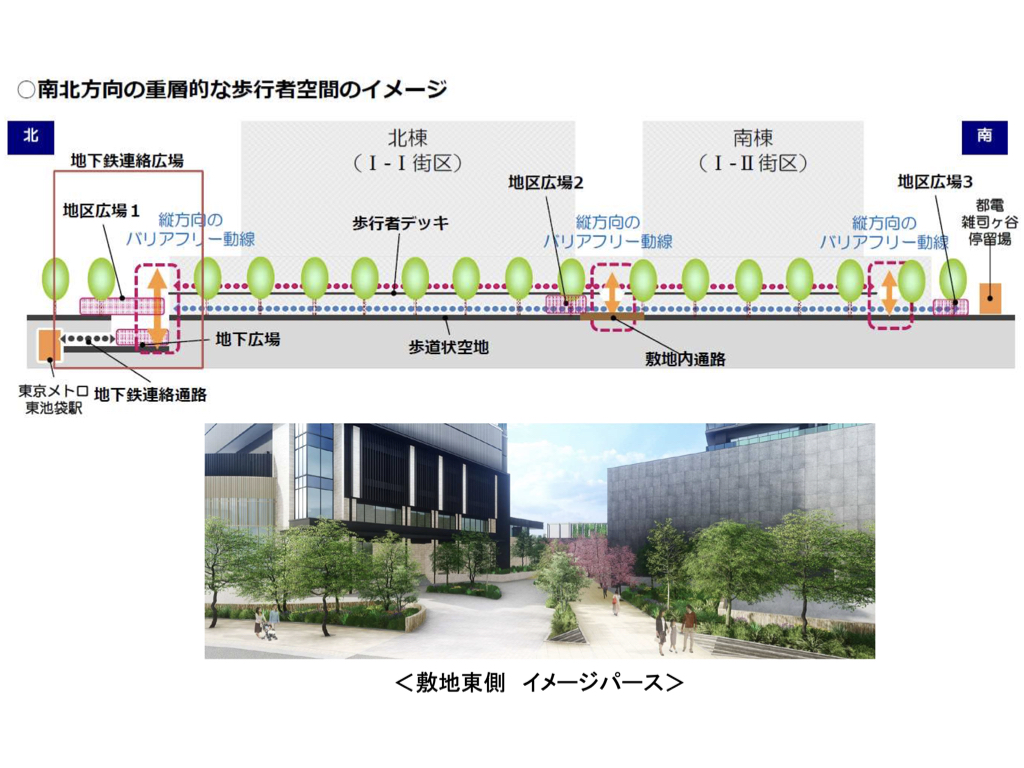 豊島区によると施設建築物の竣工は、北街区が2026年3月、南街区が2027年5月を予定している。