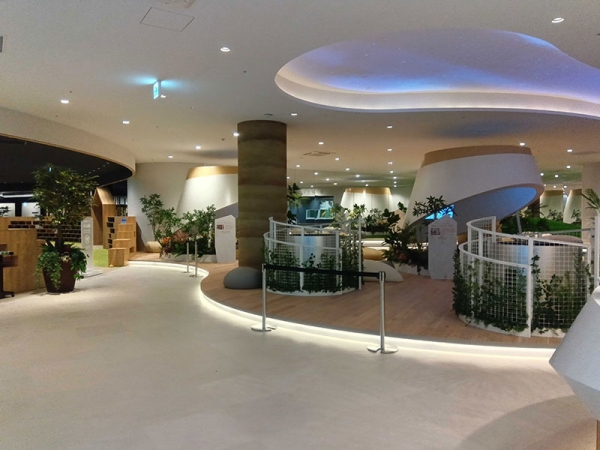 i-Labには「断熱体感ルーム」「地震体験装置」「蓄電池シアター」「実大スケルトン模型」「さらぽか体験棟」「LDK collection」と住まいの体験や知識が学べるコーナーが設けられており、そのほかにも映像だけでなく五感で感じる体感型のプレミアムシアターや声や人の動きに反応して幻想的に形を変えるキネティックアートのあるラウンジがある。