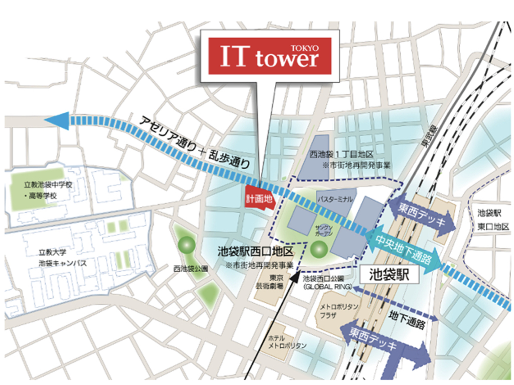 ※出典:IT tower TOKYO合同会社(2025年12月17日)『池袋駅直結!池袋西口エリアを進化させる先進のIT拠点が誕生!「IT tower TOKYO」2026年3月14日 開業』