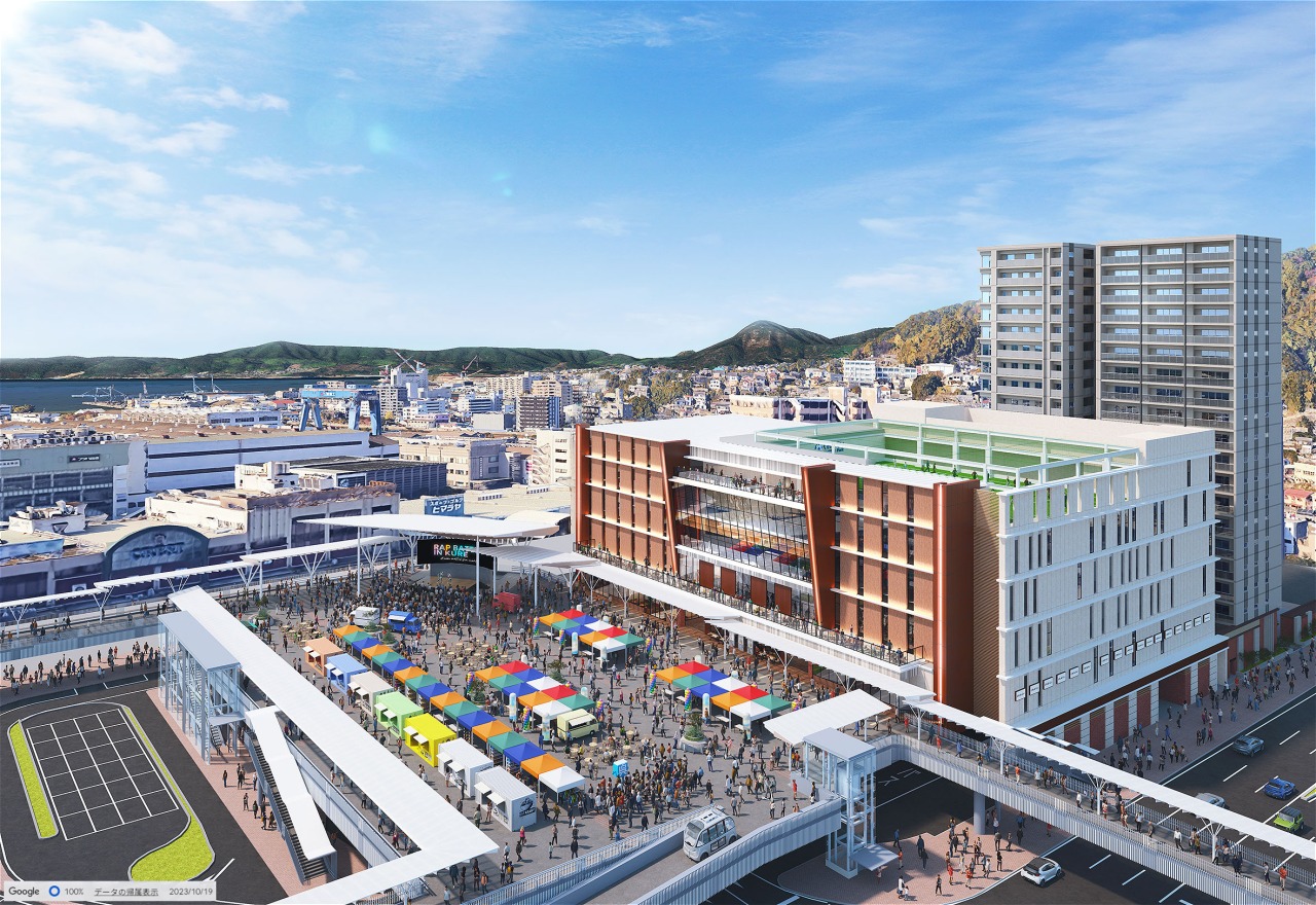 民間事業者は、公募の結果、五洋建設(東京)やマンション開発事業者などでつくるグループ「くれみらい」を選定し2023年に売却。求められたのは、単なる商業開発や住宅開発ではなく、駅前に人を呼び込み、日常的に使われる都市機能の導入である。商業、居住、交流といった複合的な機能を組み合わせ、交通拠点と暮らしを結びつけることが前提とされた。