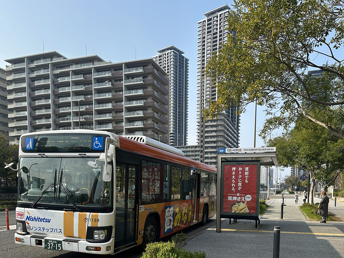 このような課題を受けて、島内では段階的に対策が進められてきた。たとえば、2019年4月からはAIを使ったオンデマンドバス「のるーと」が運行を開始した。これはスマートフォンだけで簡単に呼べる新しい交通手段で、従来の路線バスがカバーできなかった細かな島内のスポットも結び、“街の足”として定着しつつある。さらに大きな変化となったのは、2021年3月に福岡都市高速6号線(アイランドシティ線)が開通したことだ。これに合わせて、天神や博多への直行バスがルート変更や増便で強化され、乗り換えなしで都心部まで行けるルートが整備された。