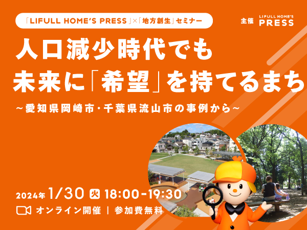 LIFULL HOME’S PRESSでは、取材記事と取材先の取り組みから、住まいや暮らしをテーマにオンラインセミナーを開催しています。第8弾となる今回のセミナーでは、「人口減少時代でも未来に『希望』を持てるまち」をテーマにお伝えします。