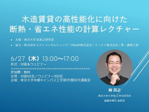 そんな中「木造賃貸の高性能化に向けた断熱・省エネ性能の計算レクチャー」が、6月27日に開催されます。