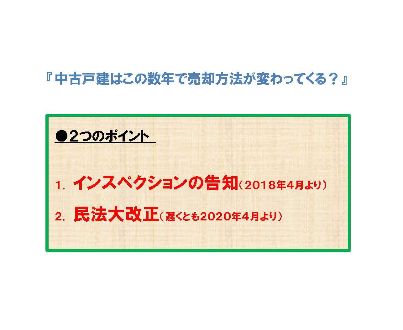 そのポイントは2つあり、1つは今年4月から始まるインスペクション(建物状況調査)の告知、もう1つは2020年4月には施行される民法改正の影響だ。これらを踏まえて中古戸建の所有者ならいつ売却するのか、不動産会社なら売り主そして買い主へのアプローチを考えておく方がよいだろう。
