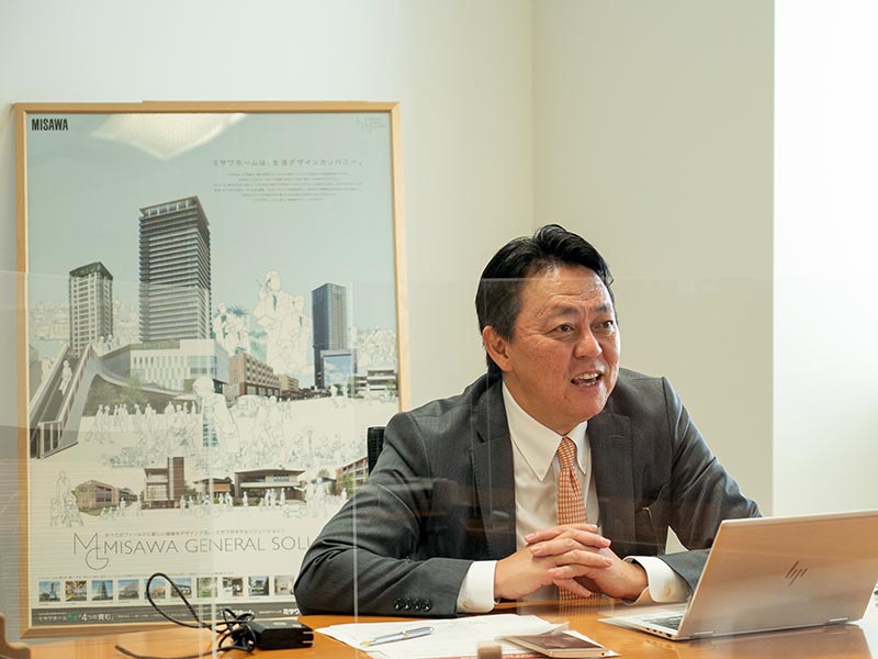コロナ禍でさらに住まいやまちの役割が見直される中、「住まいを通じて生涯のおつきあい」をコーポレートスローガンとするミサワホーム株式会社 代表取締役社長執行役員の磯貝 匡志氏に"これからの社会と住まい""ミサワホームとPLTの挑戦"についてお話を伺った。