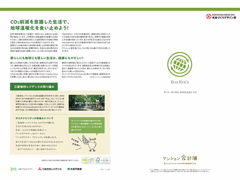ザ・パークハウスの住民の方々との取組みとしては、マンションの暮らしに使うエネルギーの見える化を「マンション家計簿」として提供しています。現在は、住戸ごとのマンションの水道光熱費・冷暖房費のランニングコストを可視化していますが、これに加えて、各住戸ごとのCO2排出量を見える化し、環境への意識向上に寄与していきます。
