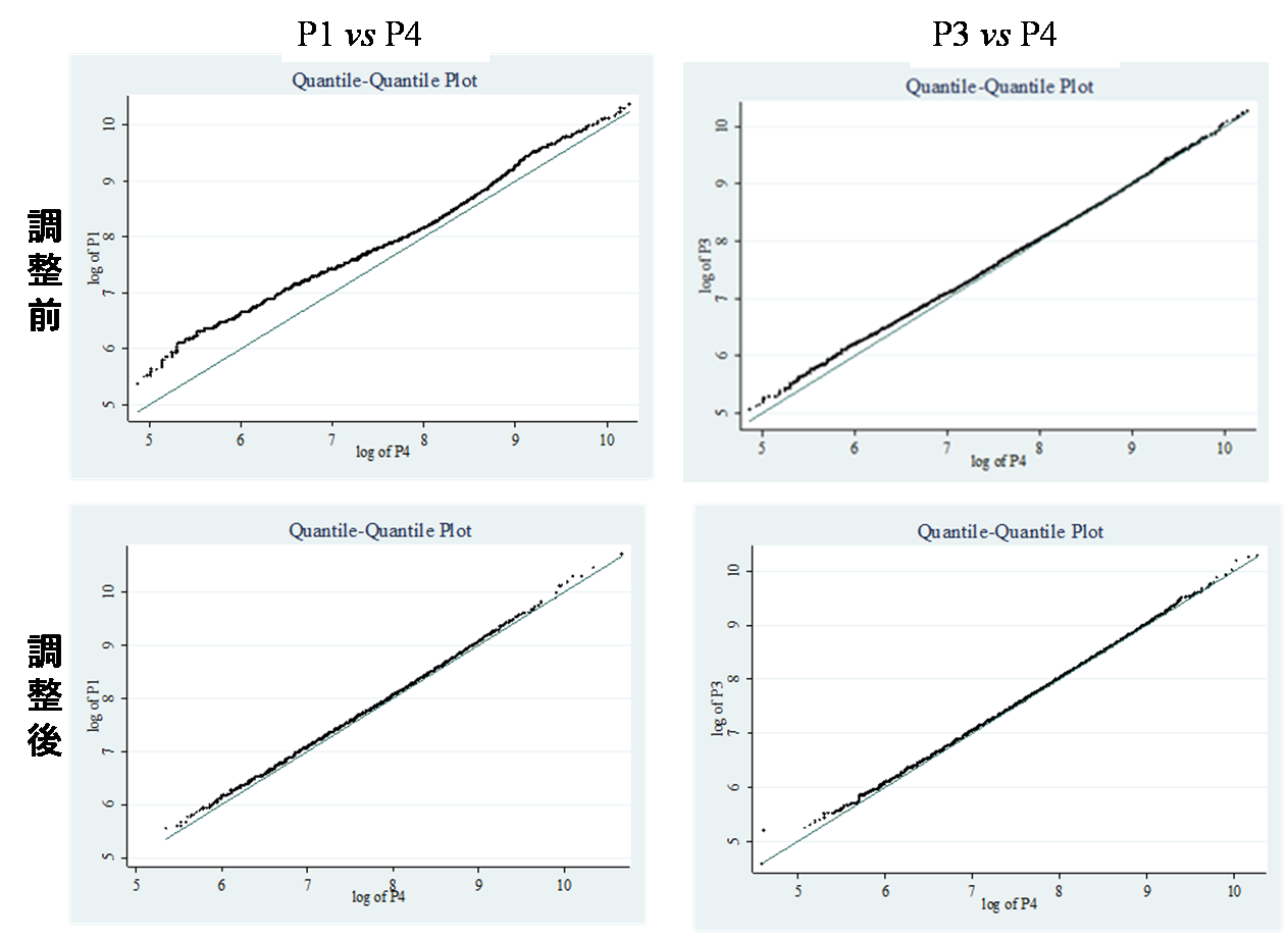 Shimizu, Nishimura and Watanabe (2016)は、品質を調整したうえで、4つの価格の違いだけを抽出し、Quantile-quantile (q-q) プロットとよばれる統計的な検定方法で、価格の違いの有無を調べている(図2)。