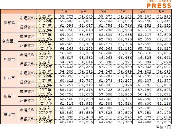 【賃貸 愛知・札仙広福版】札幌市と福岡市で反響賃料が前年を上回る
