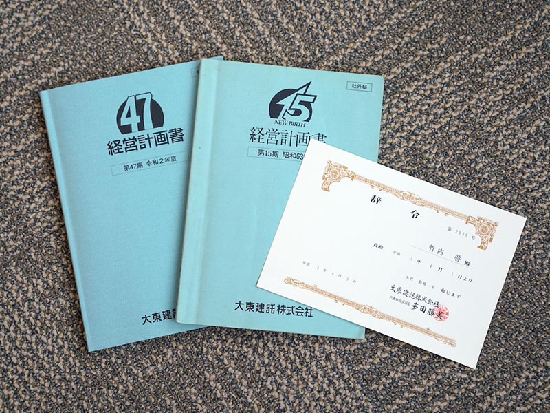 竹内氏:私がこの会社に入社したのは、1989年です。1989年といえば平成元年ですが、その辞令をもらったときの弊社の経営計画書は今でも大切にとってあります。これですね(当時の経営計画書を開いて)