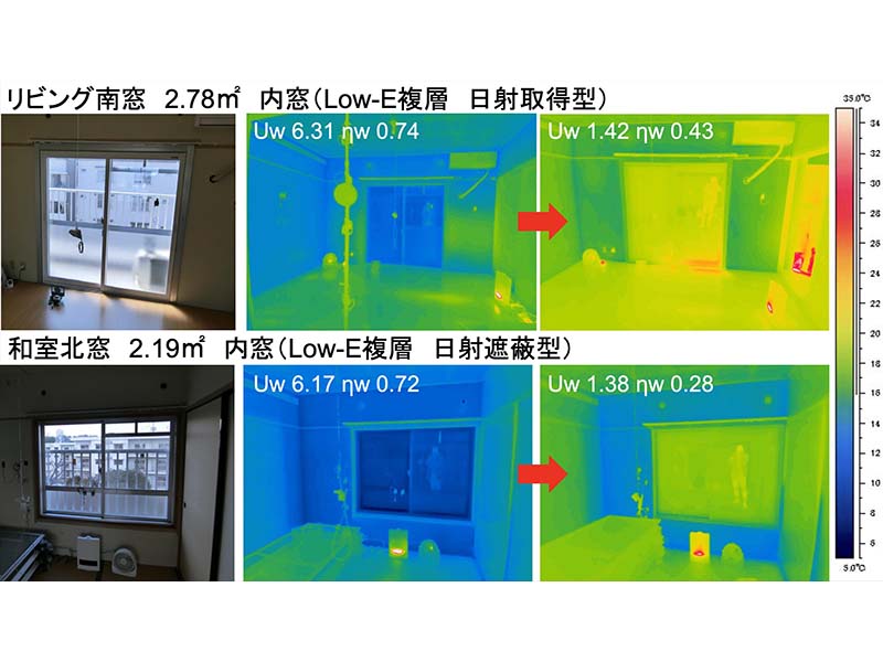 前准教授からは、既存賃貸住宅の断熱改修についての報告があった。23年に公営住宅の最上階の1部屋に内窓を設置したところ、朝の冷え込みが2度以上改善し、暖房費も3割削減されたという。内窓をつけるだけで住環境を大幅に改善できると示した。現在はさらに東京の住宅供給公社と共同で、6住戸を借りて研究を続けている。