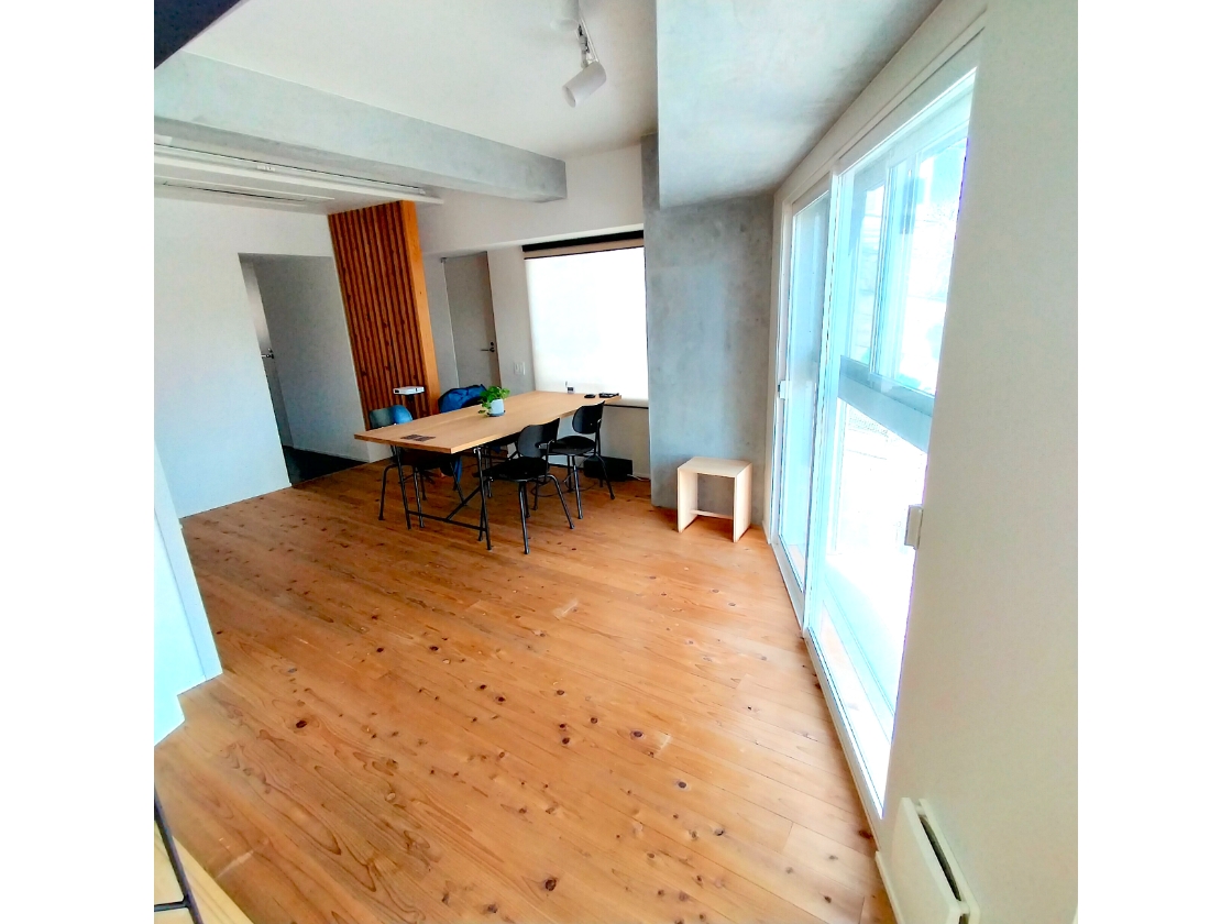 住人の方に、住み心地を伺った。奈良に自宅がある桑島隼也さんは、週3日ほど東京に出張で来る際、MEGUROHAUSに宿泊している。区分所有しているのは、2層に分かれたメゾネットタイプの住戸だ。筆者が案内してもらうと、窓からは線路が見え、近くを電車が頻繁に通っていた。それでも、断熱により防音効果がもたらされることで、音はまったく気にならない。桑島さんによれば、外からの音だけでなく、集合住宅の不満となりやすい上下階など他の居室からの音も聞こえないと言う。「以前は出張の際にホテルに宿泊していましたが、こちらの方が段違いに快適なので、デスクワークは進み、夜もぐっすり眠れます」