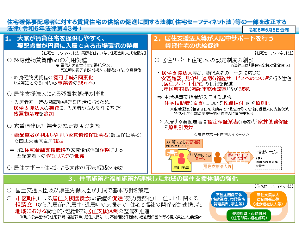 2024年6月「改正住宅セーフティネット法」が公布された(施行は2025年秋予定)。