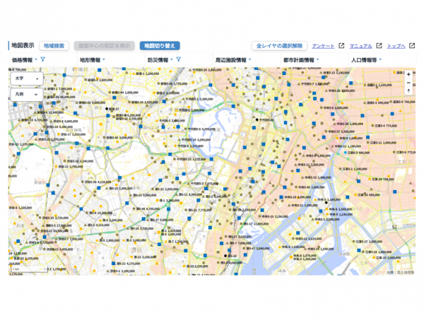 不動産情報ライブラリの地図表示でよく見られているコンテンツのトップ10を紹介する。