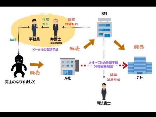 たとえば、積水ハウス事件より前の事件に、被害額6億5,000万円の渋谷区富ヶ谷事件(2015年)があります。この事件では間に2つの企業が入っており、民事訴訟も起きているのですが、示談があったということで買主側と中間業者のうち一社は裁判になっていません。