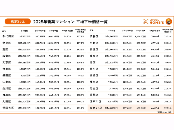 もちろんこれは極端な一例ではあるが、LIFULL HOME’Sが今年調査した東京23区の新築マンション価格(2025年1~5月平均)は、平均で1億4,402万円、平均坪単価685.6万円となり、2023~24年に続き3年連続の“平均億超え”を記録し、前年の1億1,862万円からさらに21.4%もの大幅上昇となった。