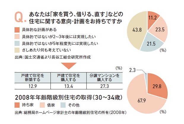 団塊ジュニア世代が30歳前後に回答したアンケートでは「住宅計画がある」という回答は約56%で、そのうち約54%が戸建て住宅の新築・購入、分譲マンションの購入意向であったことから、取得意向は全体の約30%と試算される。2008年の住宅取得状況では持ち家は30%程度でアンケートとほぼ同水準であったが、団塊世代に次ぐ人口規模の団塊ジュニア世代の住宅市場へのインパクトは大きく、同世代が住宅取得期の30代に入り始める1999年~2005年にかけて首都圏マンションは8万~10万戸、近畿圏では3.3万~4万戸の大量供給となった。