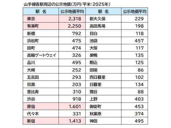 山手線全30駅 駅周辺の公示地価が最も高いのは・・・