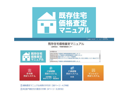 既存住宅価格査定マニュアルは、公益財団法人不動産流通推進センターが提供する不動産事業者向けの価格査定サービス。事例比較方式を採用しており、従来の地価公示・地価調査に加え、不動産情報ライブラリ掲載の「不動産取引価格情報」を追加。事例データが増えることで、より広範でリアルな市場データに基づいた高精度の査定が可能になっている。