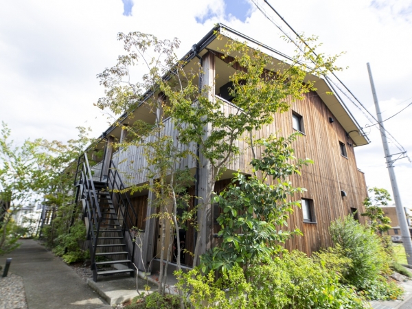 遮音性にも工夫。スギの外観が映える高性能賃貸「弐番町アパートメント」(埼玉県東松山市)