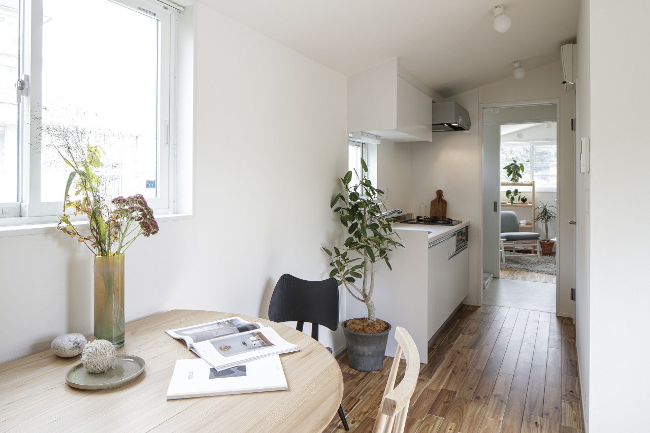 一方で、快適性につながる内装と断熱にはこだわった。無垢のフローリング材、樹脂サッシの複層ガラス窓、ダクトレスの熱交換換気装置など、木造賃貸アパートとしては珍しい建材が採用されている。それにより、室温維持に加え、高い防音性能や足元の温もりを感じることができる。断熱・気密性能はUA値0.46(断熱等級6)、C値0.4と、一戸建てのエコハウスに劣らない。また、戸数が少なく、部屋が分離されているため、隣の部屋から音が聞こえることもない。