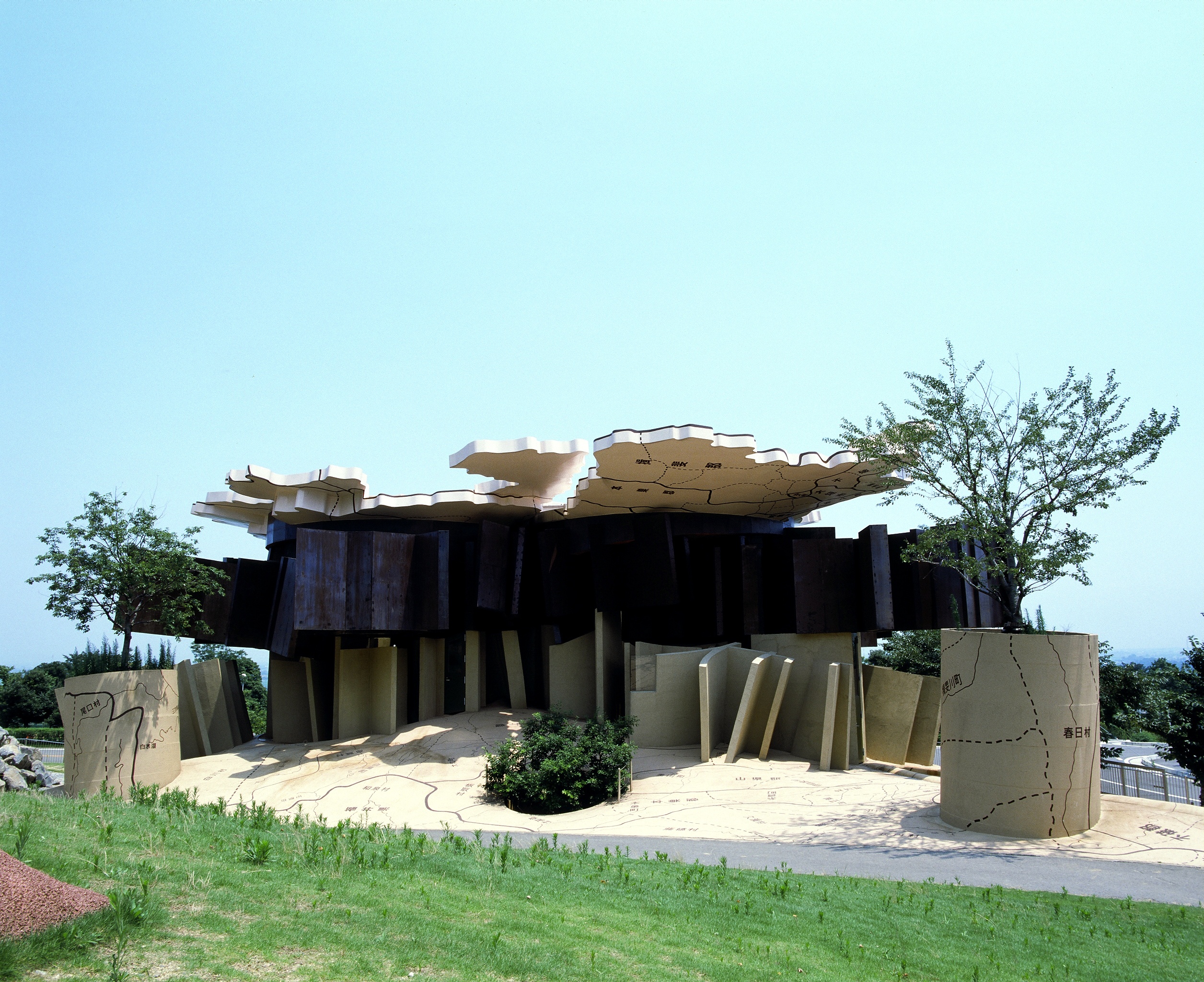 「フィールド内には相似形や対になったパビリオンがいくつかあります。それは、何度も同じような建物に遭遇し、似た環境になることで、知覚の混乱を引き起こそうという作者の意図があるからだと言われています」と田中さん。そのほかにも、大小さまざまな5つの日本列島や、それぞれに名前のついた148の道、人口的に作られた地平線が広大な敷地内に広がっている。