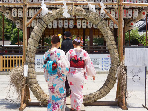 巨大な注連縄を潜れば穢れが祓い清められる、夏越の祓「茅の輪潜り」