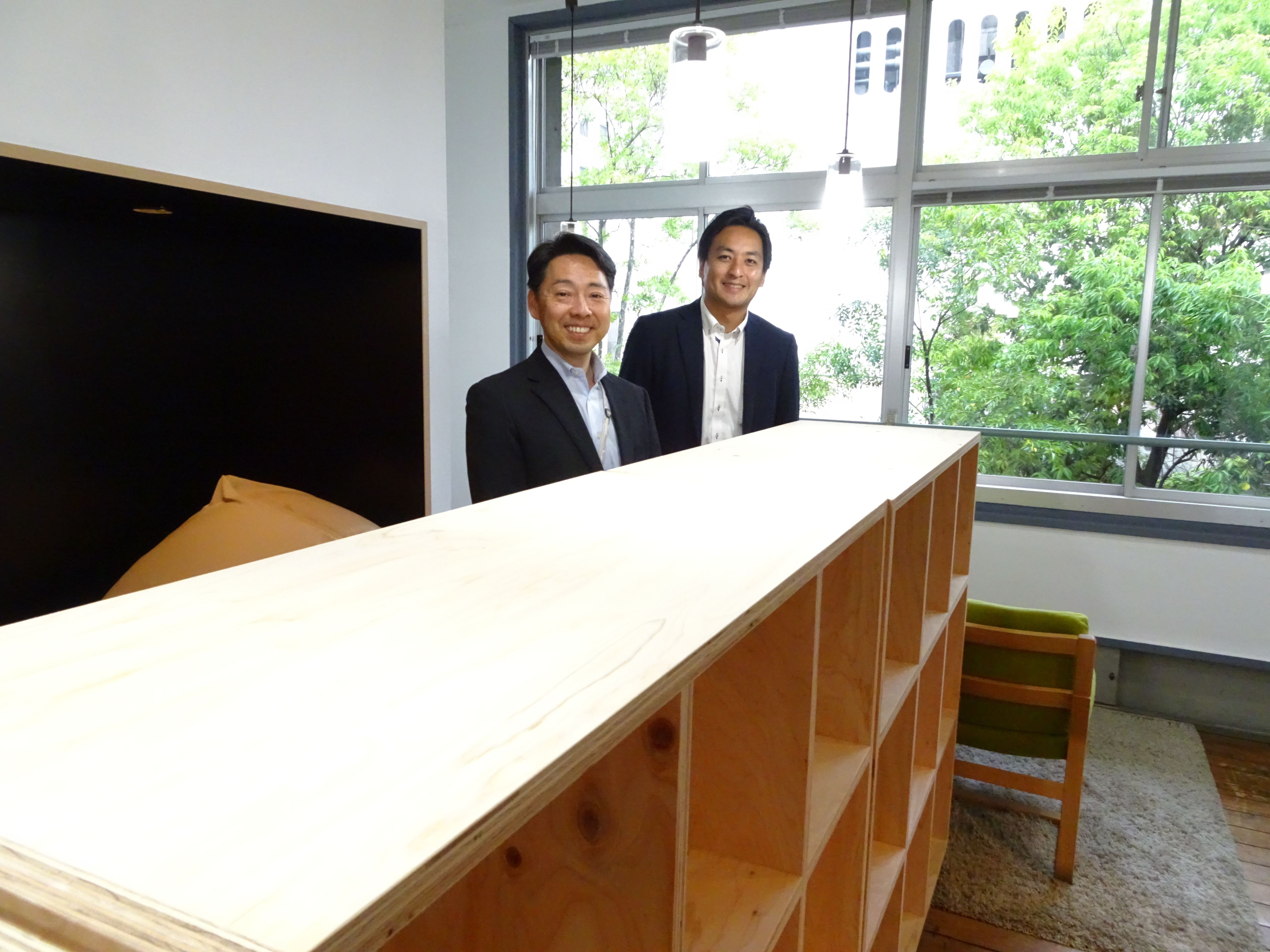 校舎の中には個人・法人の事務所がシェアオフィスやコワーキングスペース内にあり、またカフェ「ハニー珈琲」、バー「awabar」、「minne」とホームセンター「グッディ」がコラボしたハンドメードスペース「GOODAY FAB DAIMYO×minneのアトリエ福岡」など、教室を活用した様々な仕掛けがある。他にも、ビジネスに役立つイベントの開催や、入居者がビジネスに必要な試作品などプロトタイプをつくるときは「グッディ」が協力するなど、商品の開発や事業を展開する際に複数の企業がタッグを組み、お互いの技術などを活かしながら進めていくエコシステムの“見える化”を実現。今後も積極的に化学反応を起こしたいという。